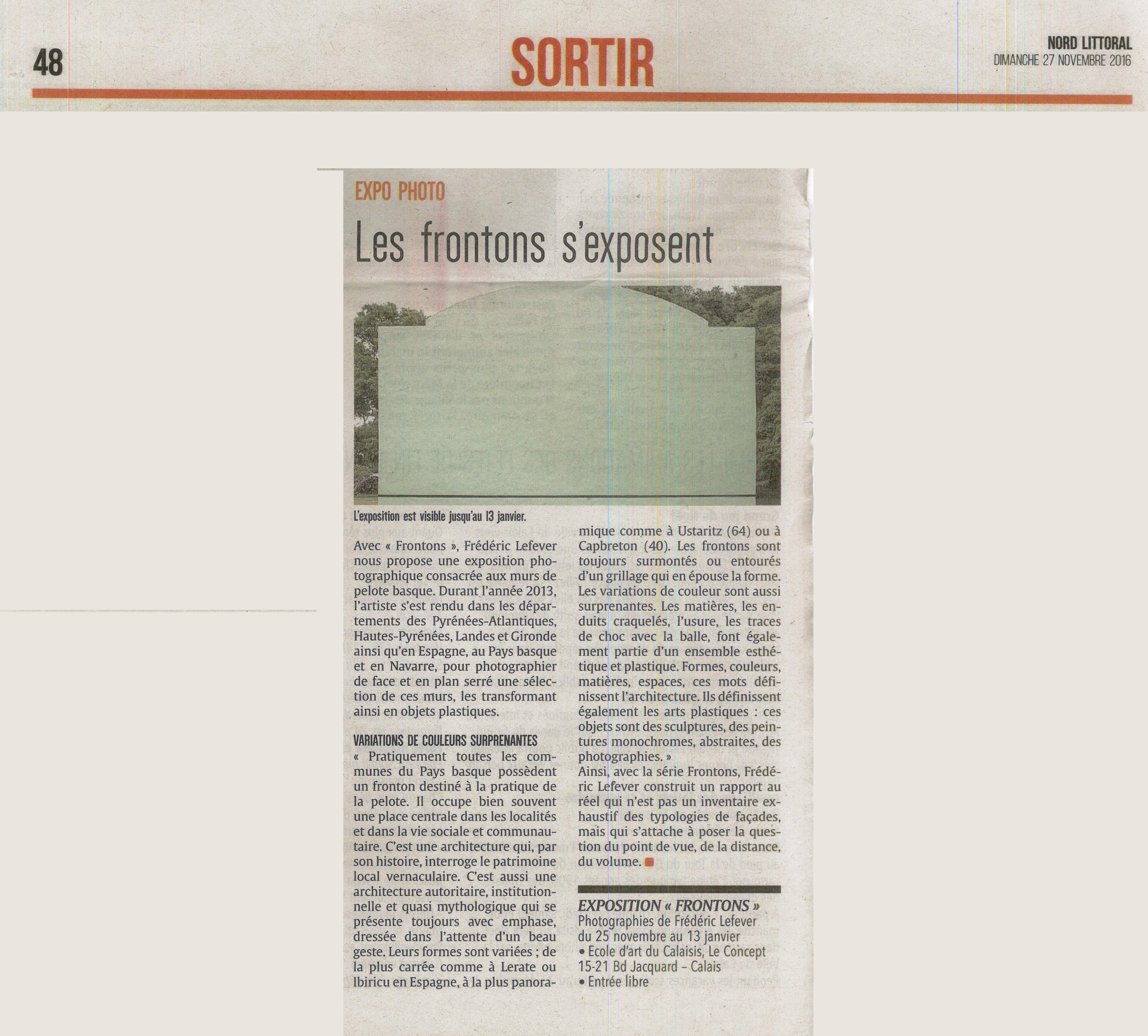 « Les Frontons s’exposent » (Nord Littoral 27-11-2016) –