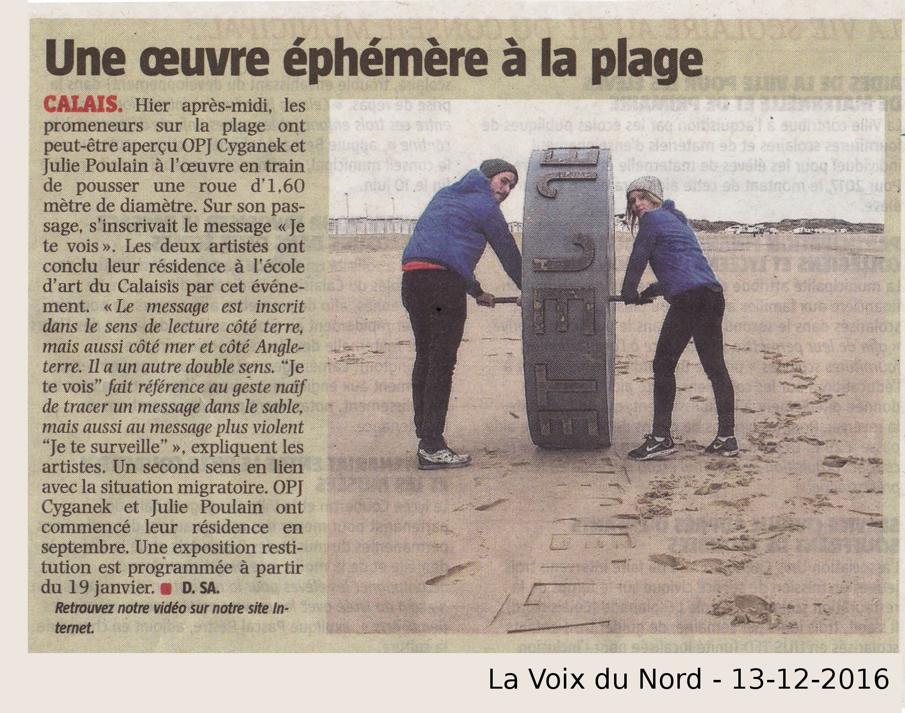 « Une oeuvre éphémère sur la plage » (La Voix du Nord 13-12-2016) –