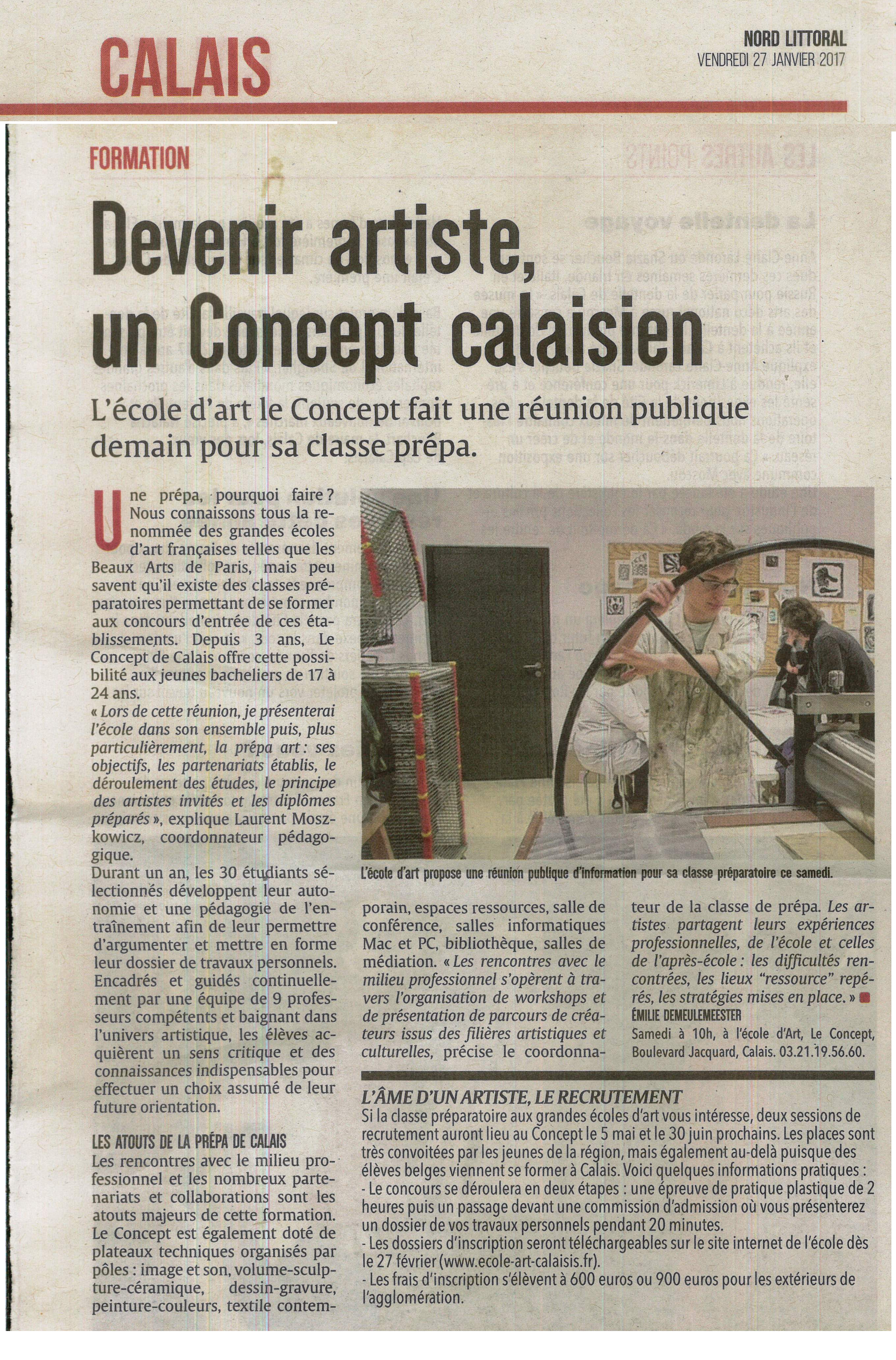 « Devenir artiste, un Concept calaisien » (Nord Littoral 27-01-17) –