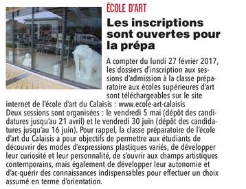 « Les inscriptions sont ouvertes pour la prépa » (Nord Littoral 28-02-2017) –