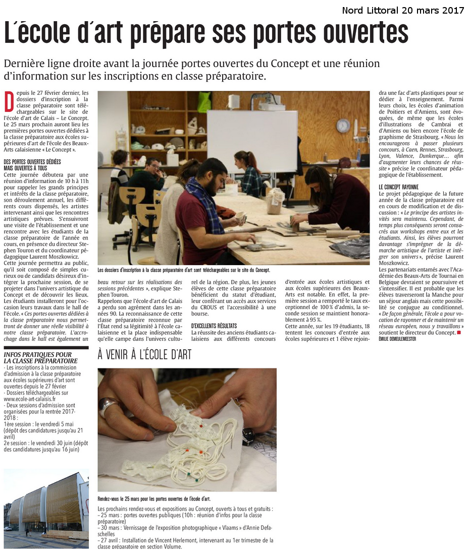 « L’école d’art prépare ses portes ouvertes » (Nord Littoral 20-03-2017) –
