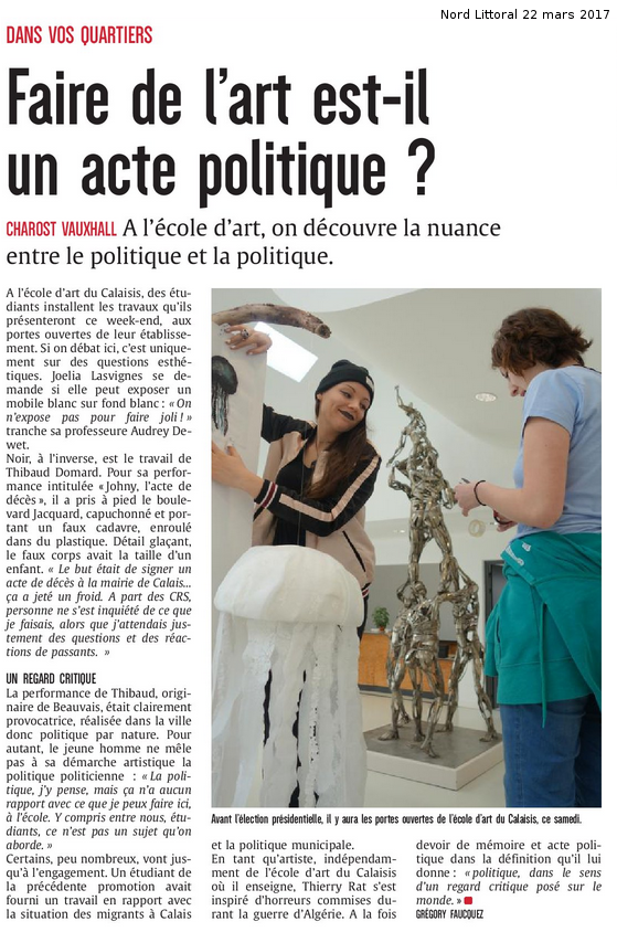 « Faire de l’art est-il un acte politique ? » (Nord Littoral 22-03-2017) –
