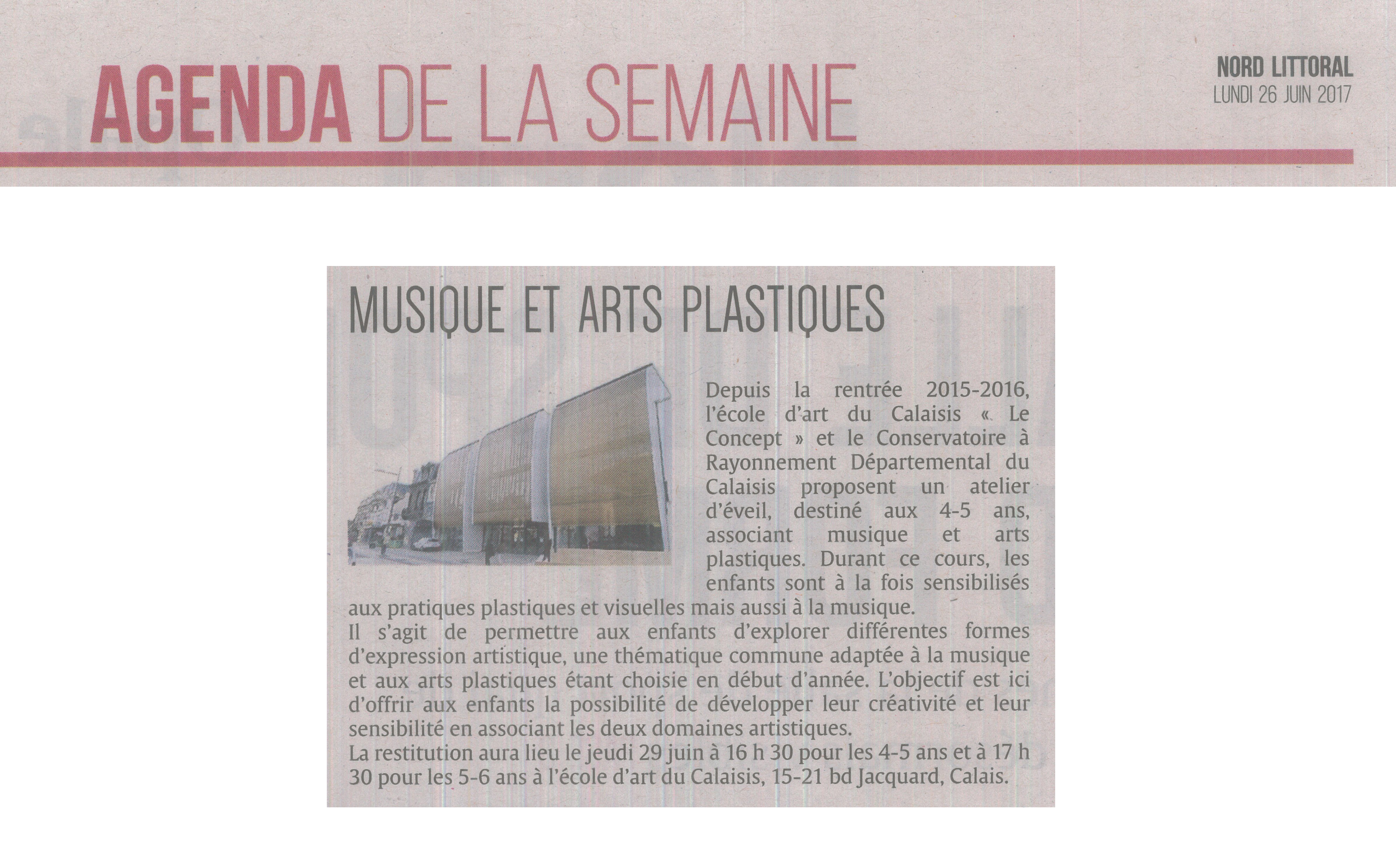 "Musique et arts plastiques" (Nord Littoral 26-06-2017) –