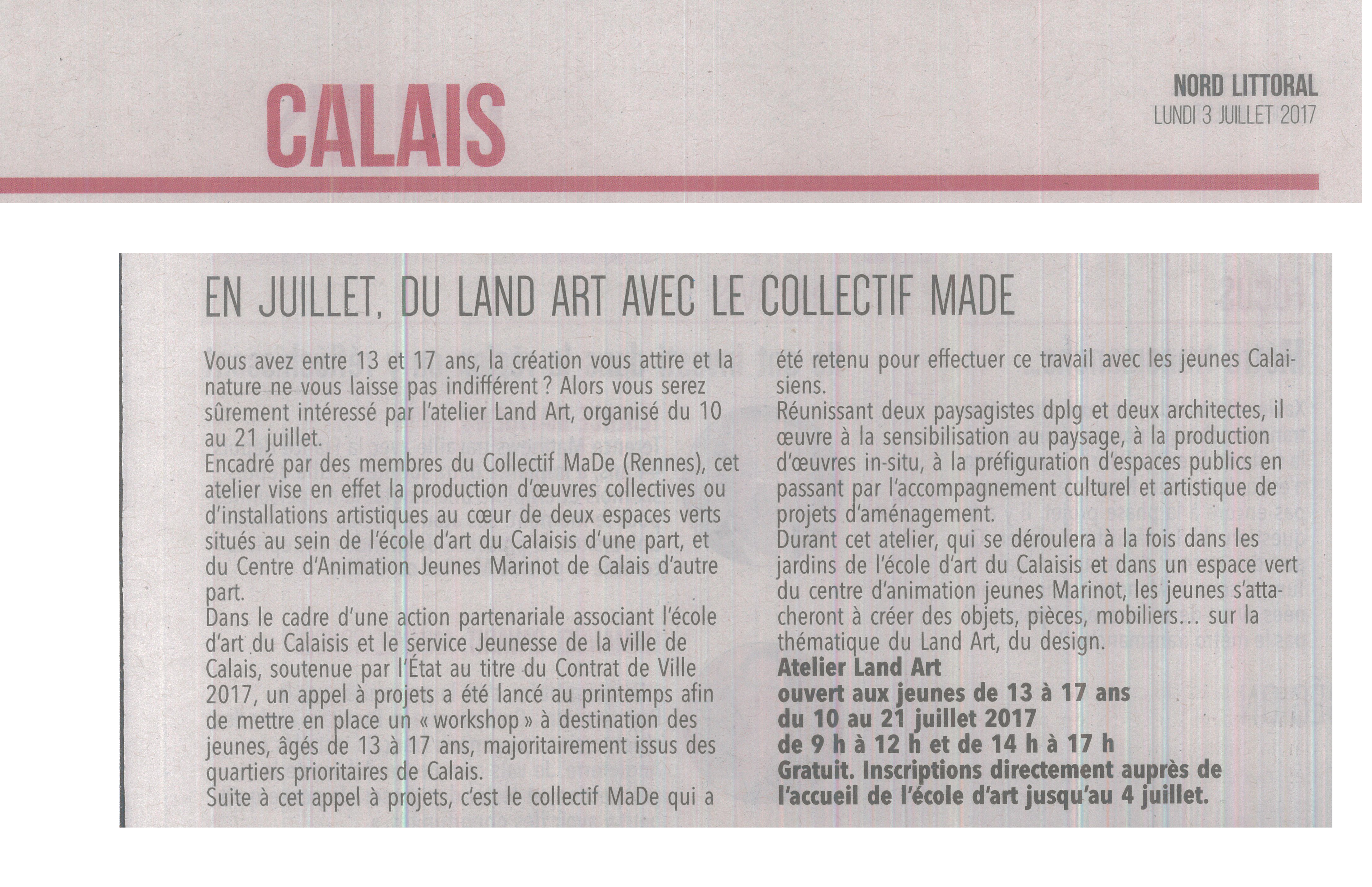 "En juillet, du Land Art avec le collectif MaDe" (Nord Littoral 03-07-2017) –