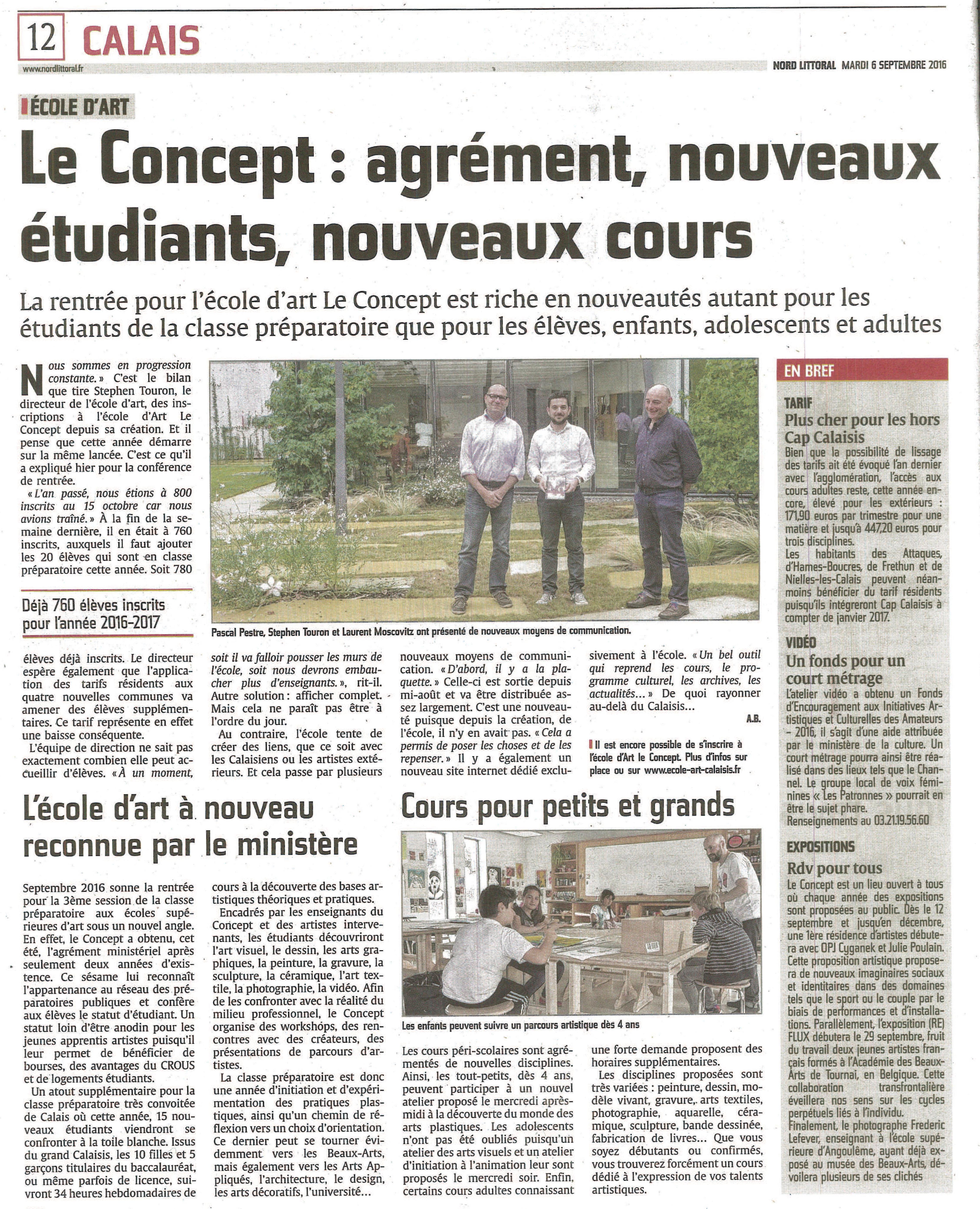 « Le Concept : agrément, nouveaux étudiants, nouveaux cours (Nord Littoral 06-09-2016) –