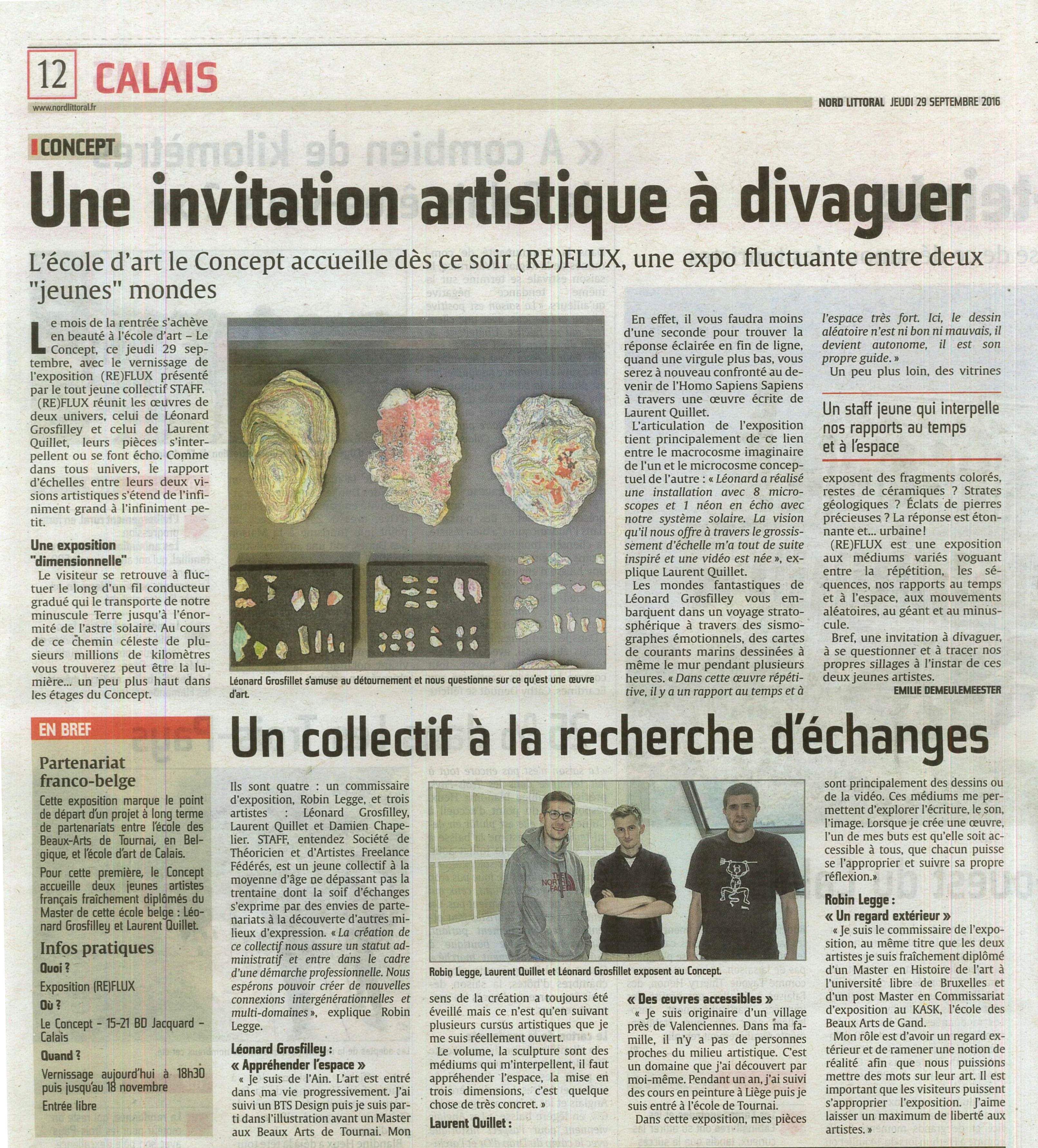 Exposition (RE)FLUX – « Une invitation artistique à divaguer » (Nord Littoral 29-09-2016) –