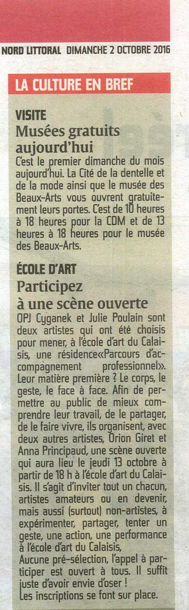 « Participez à une scène ouverte » (Nord Littoral 02-10-2016) –